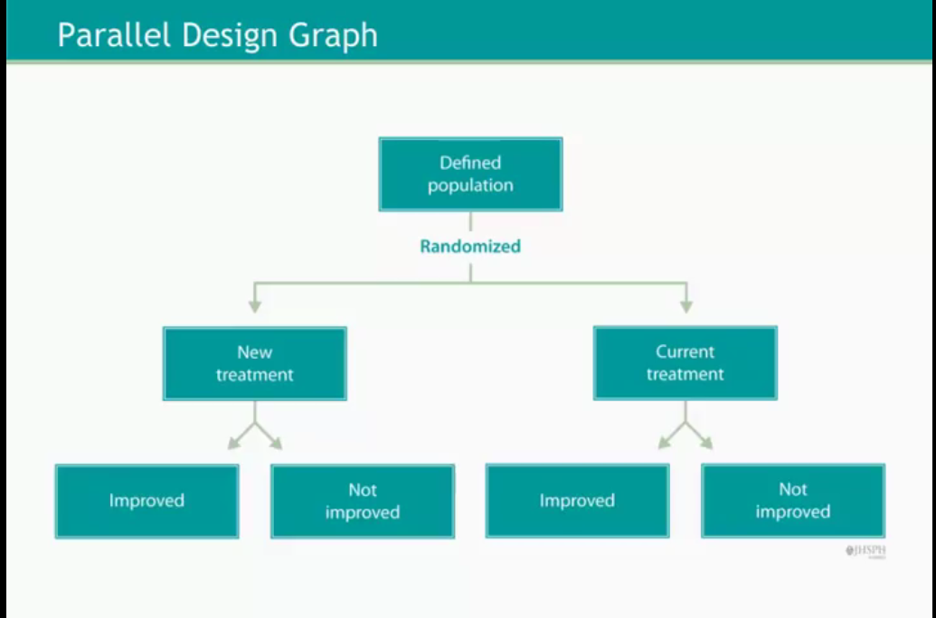 Parallel study is a type of Randomized Controlled trial (the gold standard of survey in public health and clinical trials) that attempts to compare efficiency of a new treatment/therapy/drug with and existing treatment/therapy/drug. Efficiency is often times measured by observing if there exists a significant improvement of health conditions of patients using the new treatment/therapy/drug over the older one.